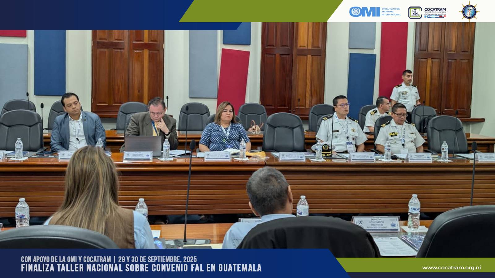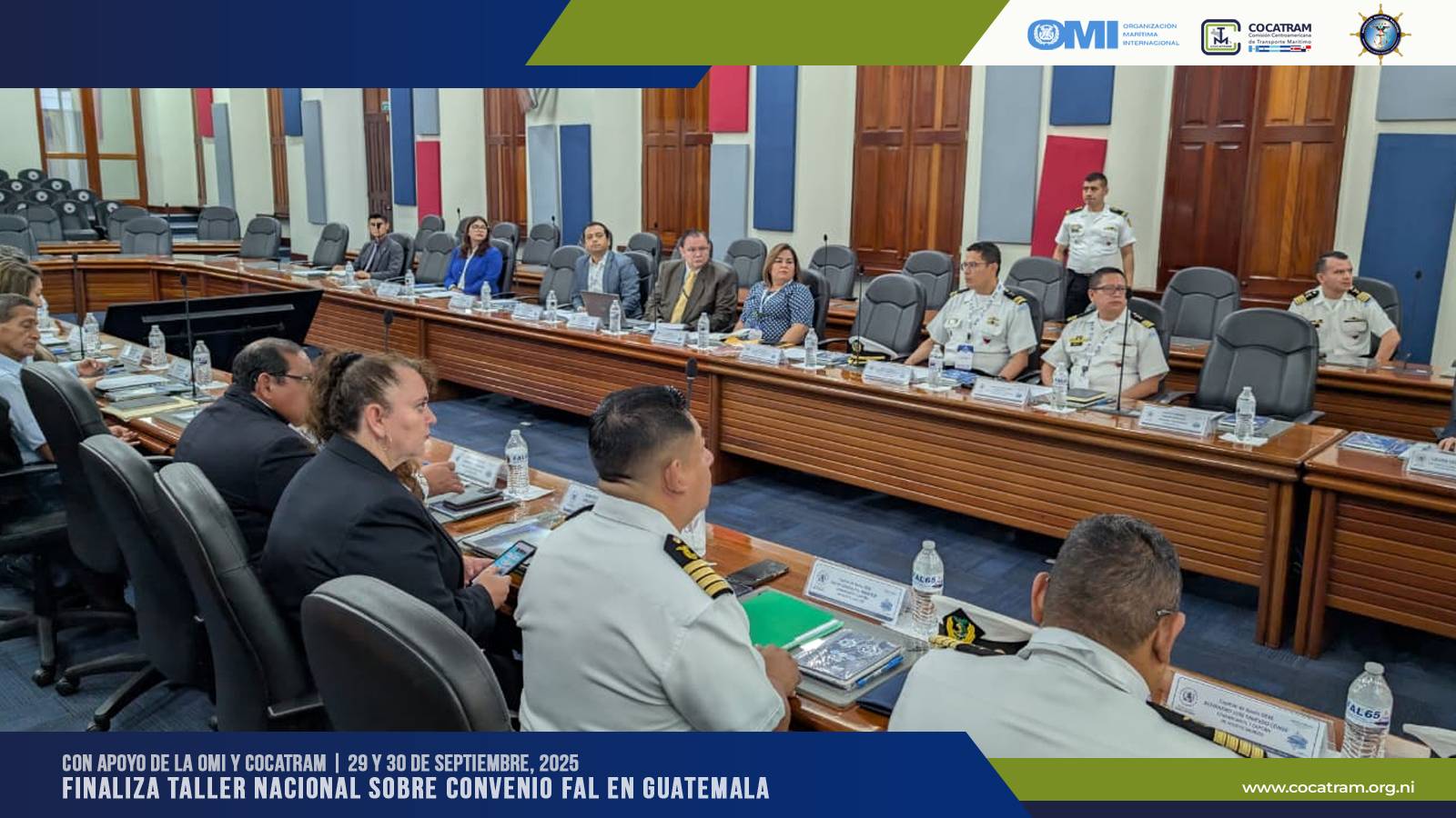 El evento, coordinado por COCATRAM con el auspicio de la Organización Marítima Internacional (OMI), reunió a las principales instituciones nacionales involucradas en la implementación de la Ventanilla Única Marítima, quienes trabajaron de manera colaborativa en la elaboración de un plan de acción concreto y consensuado para fortalecer la aplicación del Convenio FAL 65 en Guatemala.