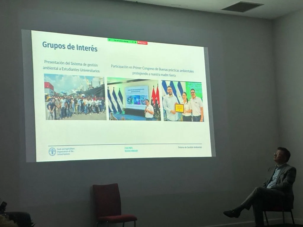 Engineer Pablo Gerald López, General Manager of Puerto Corinto and President Protempore of COCATRAM, makes a presentation on Puerto Corinto as part of the Blue Ports Initiative Project promoted by FAO.