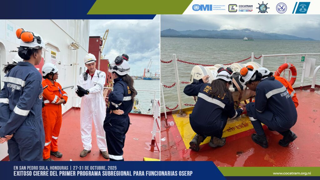 La Comisión Centroamericana de Transporte Marítimo (COCATRAM), en estrecha colaboración con la Organización Marítima Internacional (OMI) y la Dirección General de la Marina Mercante de Honduras, participó activamente en el Taller Regional para la Formación Avanzada de Funcionarias Oficiales Supervisoras del Estado Rector del Puerto (OSERP), desarrollado del 27 al 31 de octubre en las ciudades de San Pedro Sula y Puerto Cortés.